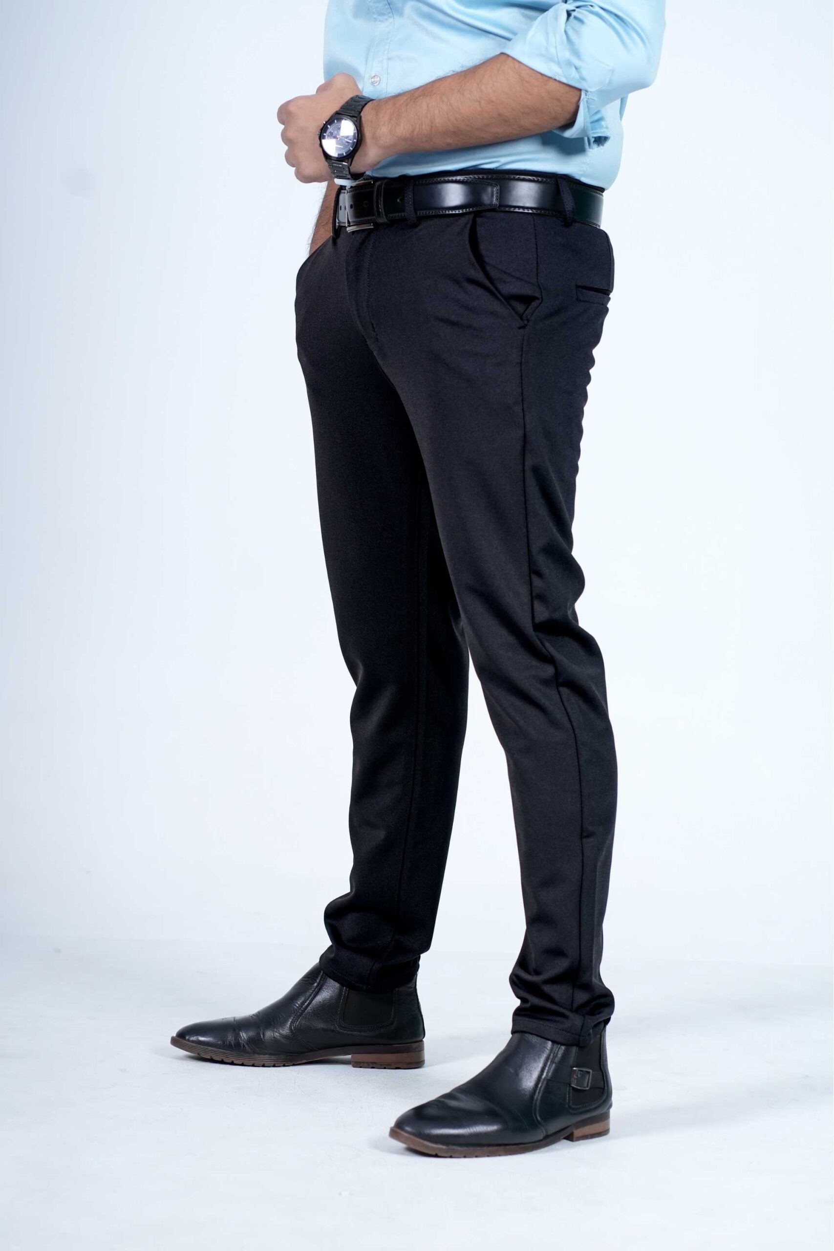 Stretchable China Formal Black Action Pant. (NO BOBBLING GUARANTEE)